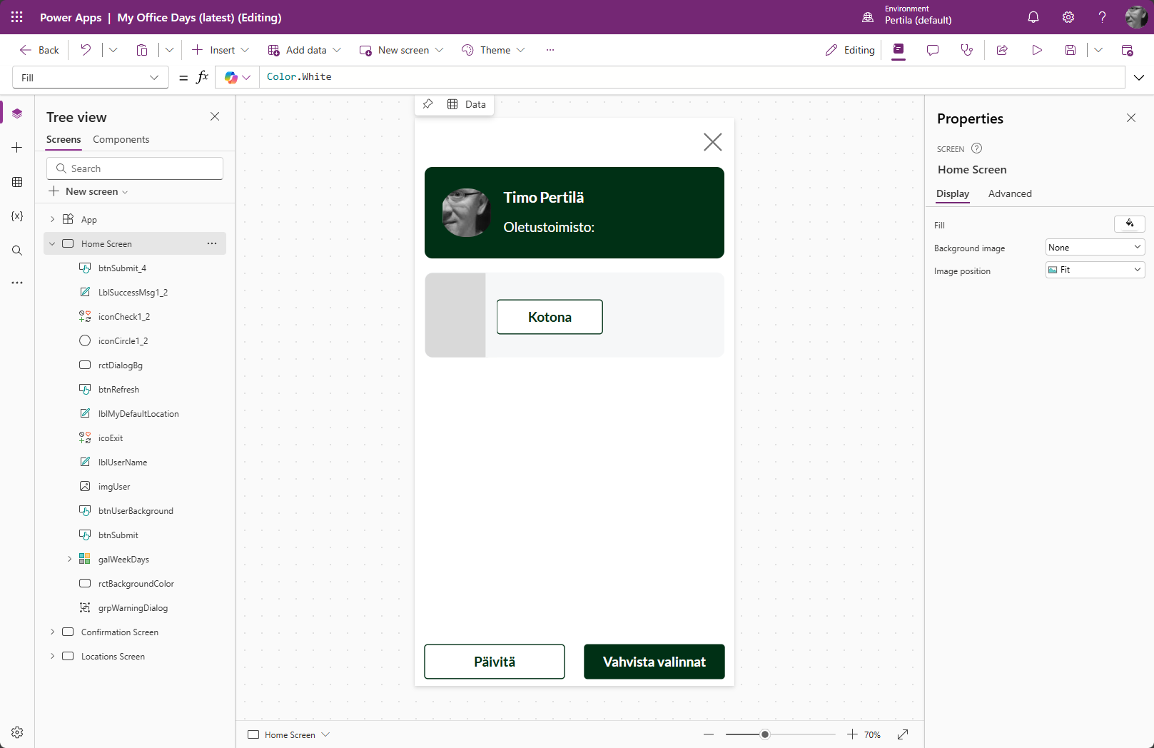 Kaikkeen tämäkään ei (vielä) pysty. Huomasin että omat komponentit ovat Copilotille liikaa. Harmi, sillä niitä ainakin itse käytän todella usein. Myöskään lomake-kontrollin manipuloiti ei vielä oikein suju.