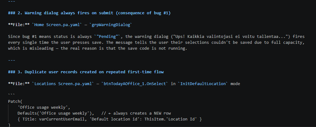Copilot löysi 200 rivin edestä mahdollisia bugeja. Vaikuttavaa ja samaan aikaan hieman masentavaa. Onhan tämä omaa kädenjälkeäni.