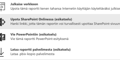 Power BI -raporttien esittäminen SharePoint Onlinessa
